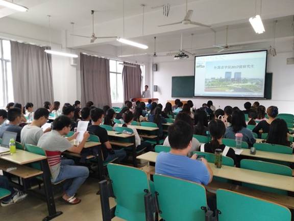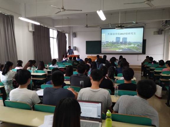 会议首先由胡丹书记代表学院致词,欢迎2017级研究生的到来。胡书记对学生们在研究生期间的学习生活提出了具体要求,教导学生努力在三年里成为有用之才,认真做好语言研究,致力文化的融合、交流和贯通。随后,韩院长为2016级研究生新生介绍了beat365的基本情况,包括学院概况和发展历史等,他向同学们强调本硕的差别和创新的重要性,并根据beat365研究生培养的基本情况,详细介绍了学术型研究生和专业型研究生在培养目标和培养模式上的不同。接下来,副院长唐军介绍了各位导师的科研项目,研究成果等相关信息。