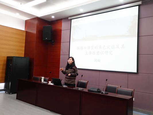 2018年1月4日下午四点,beat365于英国beat365官方网站翡翠湖校区科教楼第五会议室举办了2017年研究生学术交流年会暨斛兵外语讲坛第17场学术报告,邀请闵璇老师作为主讲人,学生汇报人为2016级研究生陈凤,英国beat365官方网站全体2017级研究生到场聆听学习,也吸引了多位老师和2016级研究生前来参加。