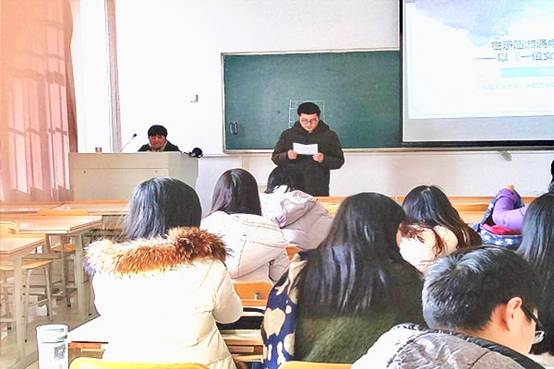 张小曼老师本次报告的主题为“在矛盾漩涡中挣扎的柔情—以《一位女士的画像》为例”,主要分析亨利·詹姆斯作品中女性人物的性格、命运与反抗,从而窥探作者的内心世界。首先,张老师为我们介绍了亨利·詹姆斯的相关背景,随后介绍了他笔下各类女性人物的悲惨困境,最后分析了造成悲剧的内在原因。张老师用幽默诙谐的语言,生动活泼地为我们讲述了亨利·詹姆斯对女性的一种矛盾情怀,在提升同学们的文学鉴赏力的同时,也为大家介绍了一个新的研究方向。胡作友老师则以“走向心灵的家园—《文心雕龙》英译中的阐释学评介”为题,讲述了在翻译过程中,阐释在信任、入侵、吸收、补偿四个层面上发挥的作用并以此为观照,分析了宇文所安及杨国斌英译本的异同。胡老师指出两个译本虽然从不同角度传递中国古典文论,却阐释了相同的精神,即文学是心灵的家园。胡作友老师的报告内容新颖,条理清晰,同学们受益匪浅。