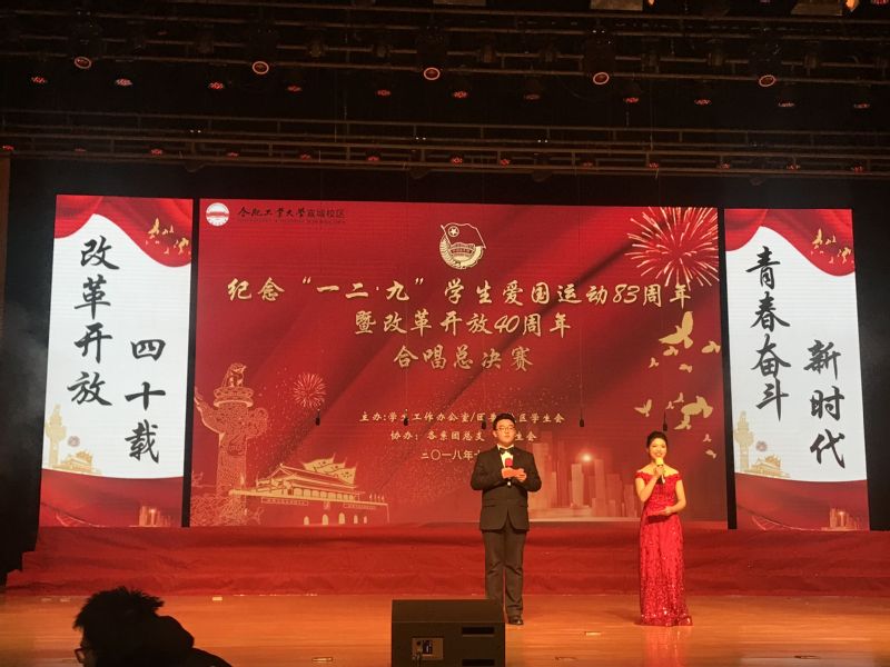 12月10日晚,英国beat365官方网站宣城校区以“改革开放四十载,青春奋斗新时代”为主题,在大学生活动中心大礼堂隆重举行纪念“一二·九”爱国学生运动83周年暨改革开放40周年合唱总决赛。此次比赛邀请了中国合唱协会会员、宣城市音乐家协会副主席朱向东老师,安徽省音乐家协会会员、安徽省十大男高音、宣城广播电视台主持人范晓成老师等担任专业评委。校党委常委、副校长、宣城校区党委书记、管委会主任陈鸿海,宣城校区党委副书记、管委会常务副主任秦广龙,管委会副主任肖苏,相关职能部门和学院负责同志与千余名师生一同观看演出。