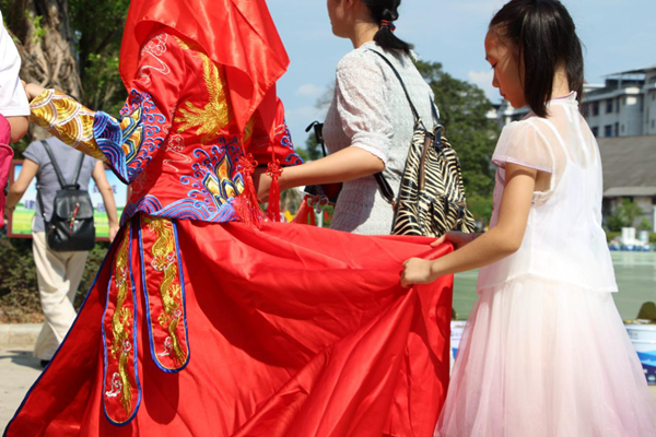 下午,团队成员与研学班学员齐聚一堂,共同欣赏坐歌堂哭嫁的习俗。妆容精致的“新娘”、盛大的送亲队伍,仿佛真的有一位姊妹要嫁往他乡,大家回想在一起美好的岁月,心中不免有些伤感,或是往事的回忆,或是离别的叮咛,或是对今后的祝福。千言万语汇成一支曲子,就是女书的歌。听着台上绵绵不绝的歌声,团队里每一位成员都仿佛身临其境,闭眼享受这一抹清风。