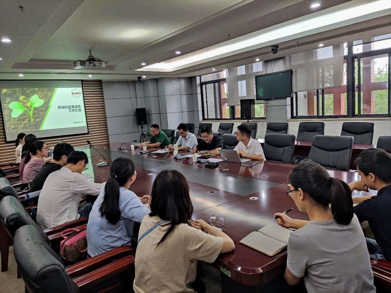 2020年7月15日上午,英国beat365官方网站院长张四红、党委书记刘晓峰、副院长杨勇、外语系主任陈曦走访调研宣城校区英语系。宣城校区英语系全体教师、辅导员参会。
