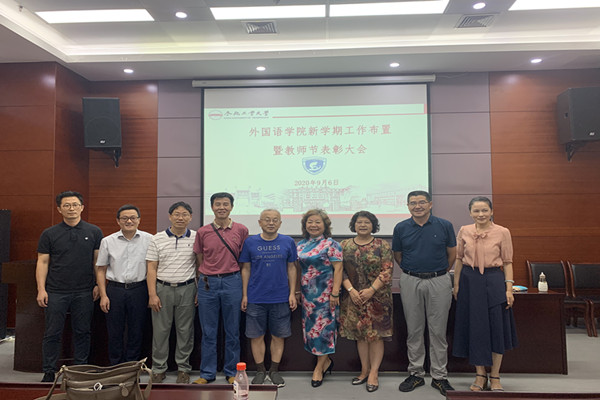 会后,学院还举行了2020年教师节表彰大会和荣休仪式。副院长唐军宣读了教师节表彰名单,党委副书记兼纪委书记苏光靖介绍了荣休教师的简历,张瑛老师作为荣休教师代表进行发言,与会领导与荣休老师合影留念。