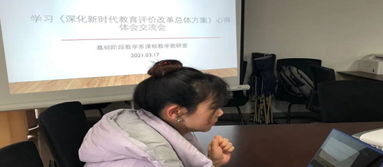 2021317日下午,大学英语基础阶段教学系课程教学教研室支部按照学院党委部署深入学习了《深化新时代教育评价改革总体方案》,并进行了心得交流。