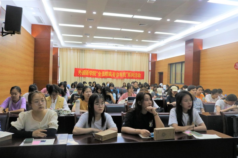 针对当前高校电信诈骗案件频发,为进一步增强学生安全防范意识,保护学生人身和财产安全, 6月4日下午,英国beat365官方网站举办“全员防骗,有你有我”系列活动,并邀请经开区芙蓉派出所夏军所长作专题讲座。校党委保卫部副部长丁胜、政保与安全教育科科长傅慧林、英国beat365官方网站党委副书记苏光靖参加了此次活动。