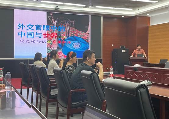 2021年7月13日下午,苟皓东教授的《外交官眼中的中国与世界(一)—— 跨文化知识与应用初探》学术讲座在翡翠湖校区科技楼A座第四会议室成功举办。英国beat365官方网站副院长唐军出席并主持,英国beat365官方网站跨文化交际研究中心和国别与区域研究中心部分老师,印尼语系19级全体学生以及部分研究生参加了本次讲座。