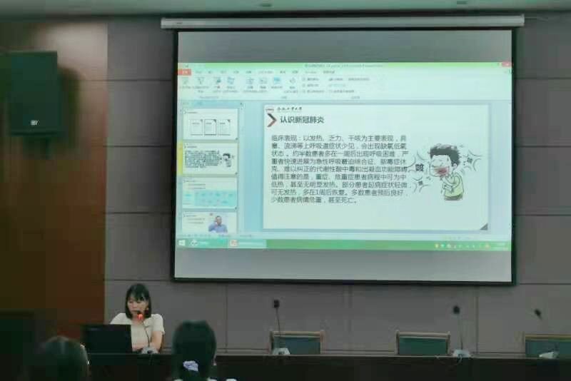 宣讲中,主讲人用通俗易懂的语言,围绕传染病的病学特点、传播途径、临床症状、预防措施等内容展开,并着重就个人防护传染病知识、如何正确洗手以及打喷嚏、口罩选择和佩戴方法等方面进行了细致的讲解,特别提醒同学们平时应注意个人卫生,并加强运动锻炼,提高身体素质,尽量避免人群聚集。