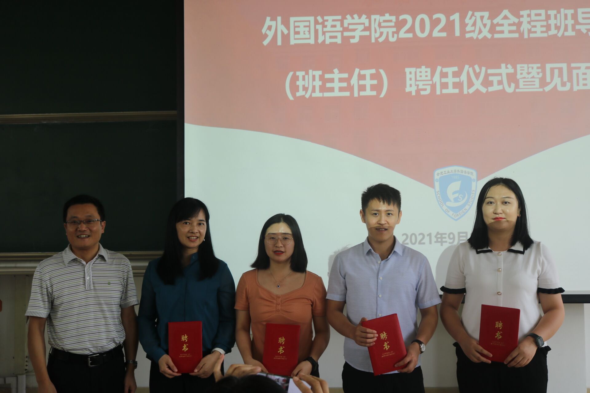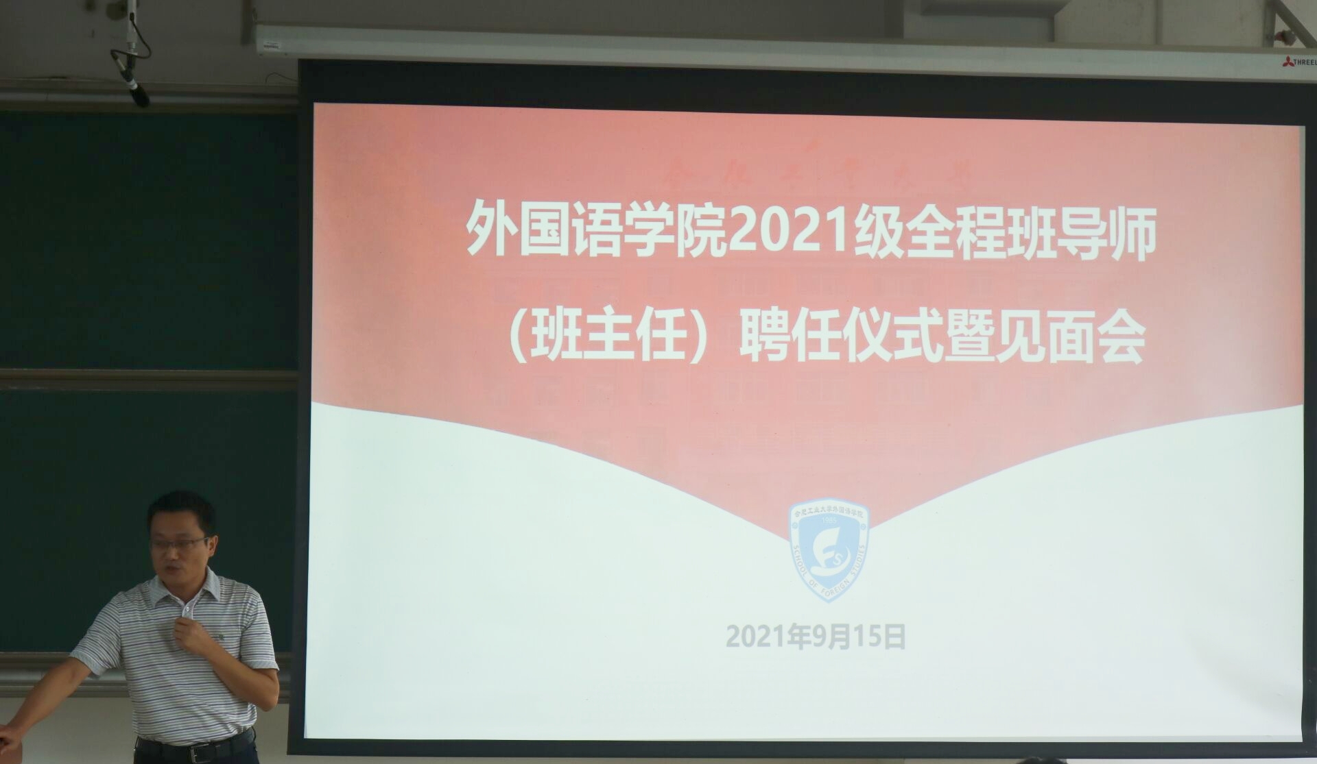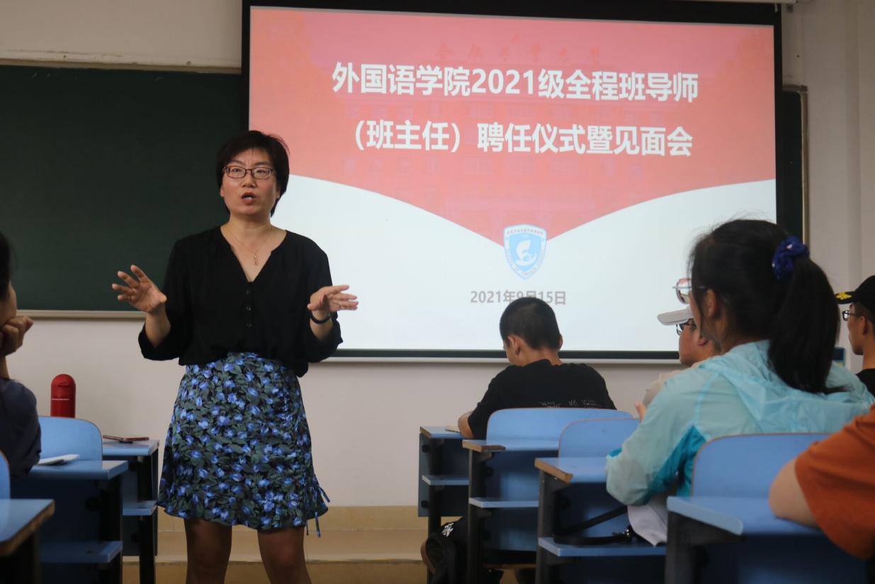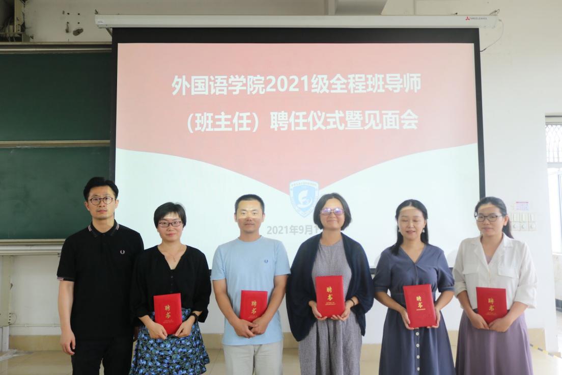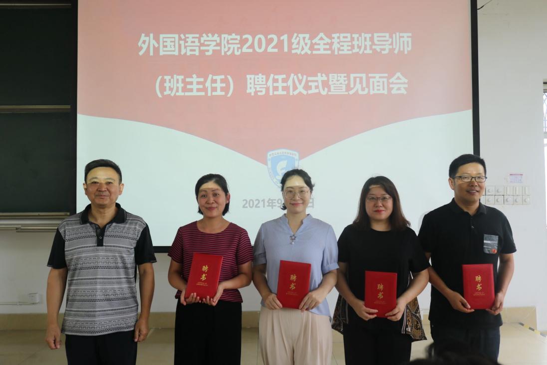 9月15日下午,英国beat365官方网站2021级全程班主任(班导师)聘任仪式暨见面会在翡翠湖校区第三教学楼301教室隆重举行。学院党委书记刘晓峰、副院长唐军、副院长黄川、党委副书记兼纪委书记苏光靖、新聘班主任、班导师以及2021级全体学生参会。会议由2021级学生辅导员黄肖钰主持。