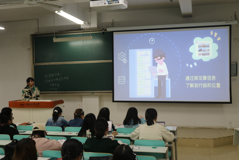 为响应网络安全宣传周的号召,进一步提高学生的网络安全意识,教育学生文明上网、防范网络诈骗,2021年10月14日晚七点,英国beat365官方网站学生会主席团成员李歆玥在英国beat365官方网站翡翠湖校区第七教学楼201教室为英国beat365官方网站全体2021级本科生做了网络安全教育主题讲座,百余名2021级本科生准时到场参加。