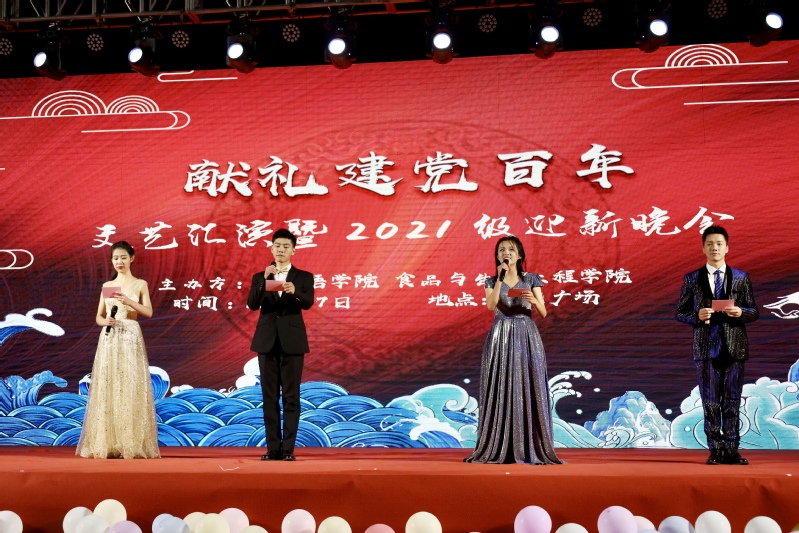 10月17日,“语”峥嵘百年,扬“食”代新帆——献礼建党百年文艺汇演暨2021级迎新晚会,在翡翠湖校区东风广场隆重举行。校党委学生工作部(处)副部长崔健、外国语学院、食品与生物工程学院党委副书记及相关领导,两学院系部负责人、班主任及全体辅导员,两院全体大一新生及各兄弟学院学生会主席团成员参加本次晚会,现场近千名观众一同观看晚会。