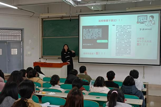 会上,主讲人康嘉琦以通俗易懂的口吻从三个方面介绍了电信诈骗、电信诈骗的定义和惯用套路以及如何防范电信诈骗。其中特别强调了任何诈骗都是以金钱为目的,且电信诈骗拥有蔓延性大、发展迅速、手段更新频率高、远程团伙作案、跨境犯罪等特点,因此打击难度十分大,大家需要警惕任何付款、转账的要求,以避免不必要的损失。关于电信诈骗惯用套路,包括网络购物诈骗,即骗子谎称低价售出商品,发送虚假QQ或微信链接网址;兼职诈骗,即网上刷单刷信誉;补助救助诈骗,即骗子向弱势群体发送补助短信下达指令进行诈骗;推销陷阱,即骗子自称学校代理商向学生推销瑕疵产品。此几类诈骗在校园中易见,同学们需保持清醒头脑,谨防受骗。同时,强调了要坚持“四不要”和“四要”。“四不要”:不要链接陌生WIFI,不要透露个人信息,不要将身份信息存在手机里,不要打开隐私功能,如附近的人、常去的地方等。“四要”:转账前要多方核实,手机电脑要安装安全软件,QQ微信要开启设备锁及账号保护,要留意系统弹出的防诈骗提醒。最重要的一点,下载国家反诈骗中心APP,开启来电预警模式。