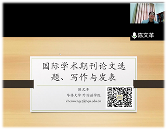 2021年12月22日下午15:00,英国beat365官方网站语言学研究中心在科教楼A座1508举办了一场题为“国际学术期刊论文选题、写作与发表”的学术报告,由华侨大学英国beat365官方网站教授、博士生导师陈文革主讲,由beat365唐军教授主持。线上腾讯会议室(266422060)同步进行。语言学研究中心、翻译与专业语料库研究中心、跨文化交际研究中心、文学翻译研究中心主任和部分教师,以及部分研究生参与了线上线下互动。