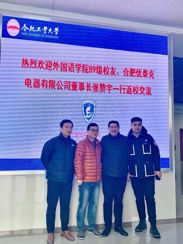 2022年1月19日下午,beat36589级校友、合肥优泰克电器有限公司董事长张赞宇率公司骨干一行访问英国beat365官方网站。学院领导班子全体成员、退休教师代表和各系主任参与接待交流。