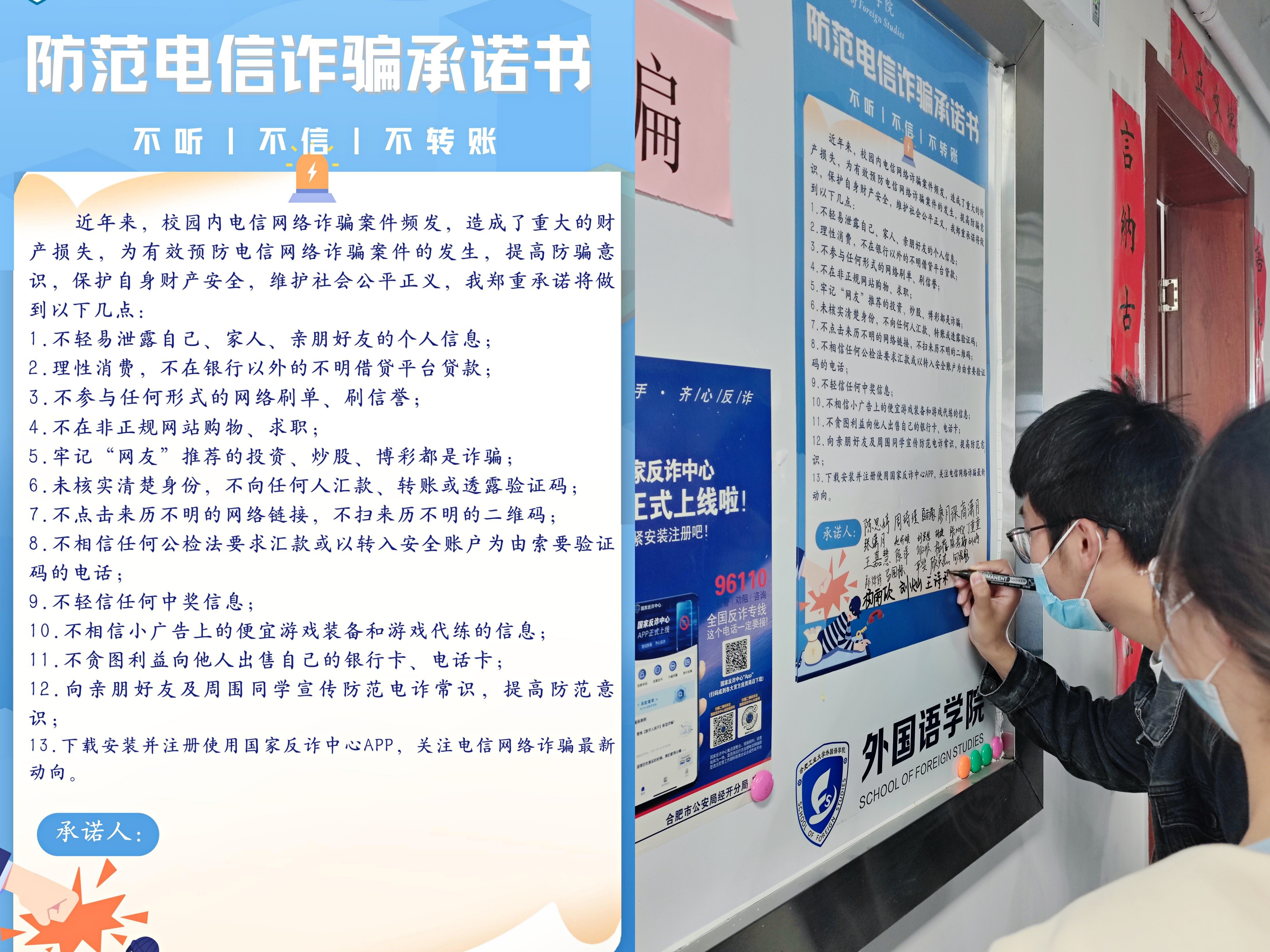 确保线下宣传“百分百”。充分利用网格化管理,多渠道、多方式走进学生宿舍开展防诈骗宣传,张贴防诈骗小贴士,签署《英国beat365官方网站防范电信诈骗承诺书》,做到100%下载安装、100%实名上线、100%操作使用国家反诈中心APP。