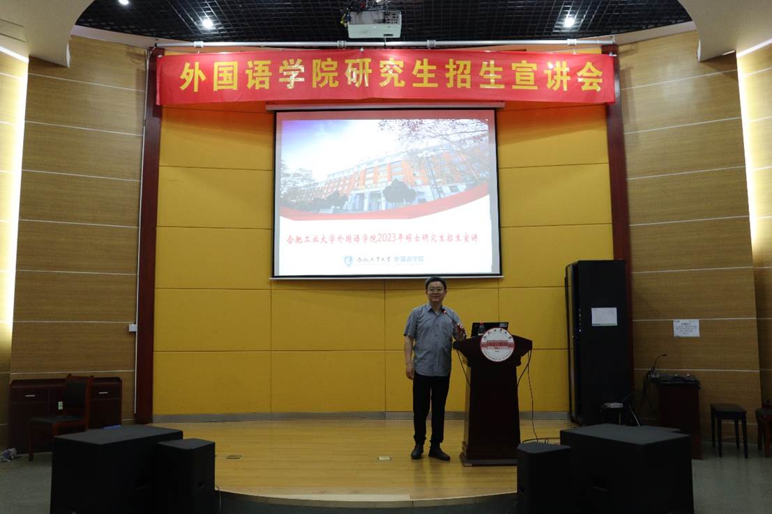 5月27日下午,学院2023年度研究生招生首场宣讲会在宣城校区大学生活动中心小报告厅举行。本次宣讲会由英语系陈路林主任主持,学院教学院长黄川带领研究生招生老师进行招生宣传。宣讲会上,徐鄢雯老师从学位点详情、师资队伍、教学平台与设施、导师科研成果简介、招生详情、就业与深造情况以及研究生学习生活等方面给在场的同学们进行了详细地讲解。