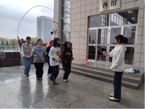 本次活动设置毽球计数个人赛,同时设置了包括集体跳绳、蛟龙出海、心心相印、超音速、不倒森林在内的共五个团体项目。在排练过程中,各位选手密切配合,互相勉励,勇创佳绩。(图5-1、5-2)