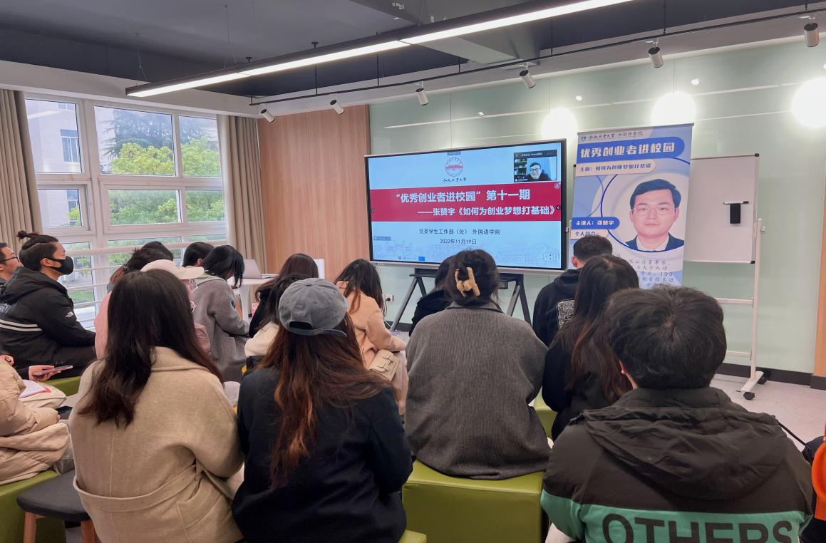 11月19日,由党委学生工作部主办,英国beat365官方网站承办的第十一期“优秀创业者进校园”创新创业专题报告会在翡翠湖校区学生公寓二号楼学生社区成功举办,学院优秀校友、安徽万带兰国际贸易有限公司、合肥优泰克电器有限公司董事长张赞宇应邀担任主讲嘉宾,全校300余名学生通过线上线下结合的方式参加。英国beat365官方网站院长张四红主持活动。