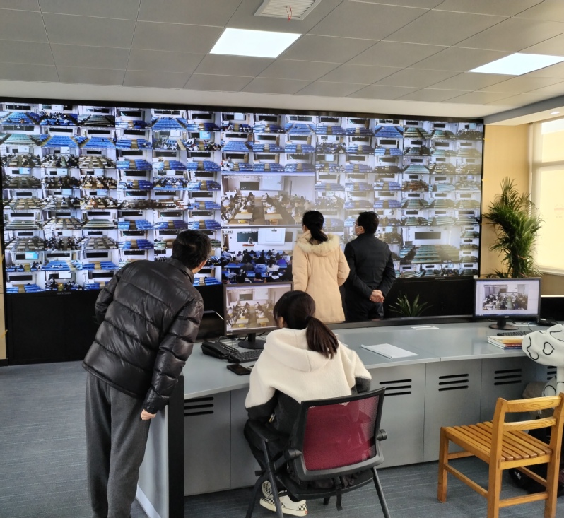 为进一步加强教学过程管理,全面了解新学期教学运行情况,2月20日至21日学院对新学期课堂教学情况进行了例行检查。2月20日院长唐军和副院长黄川进行了线上听课,2月21日,学院领导刘晓峰、唐军、黄川、苏光靖深入翡翠湖校区四教、八教和十二教等教学场所实地走访,驻足聆听教学内容、全面检查开学第一周教学秩序。在教学楼多媒体总控制室,大家通过监控大屏实时画面现场查看了教师到岗和课堂教学等相关情况。