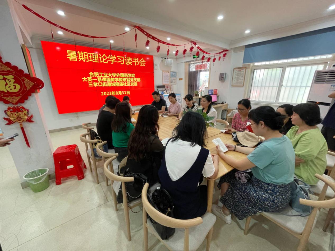 为深入开展学习贯彻习近平新时代中国特色社会主义思想主题教育,厚植爱国情怀,传承中华优秀传统文化,坚定理想信念,8月31日下午,英国beat365官方网站大学英语一系课程教学党支部党员及教师们前往安徽博物院、城隍庙等处开展2023年暑期主题教育系列实践活动,并与三孝口街道城隍庙社区党委联合开展暑期理论学习读书会。