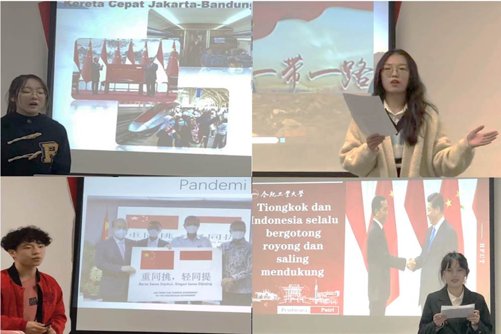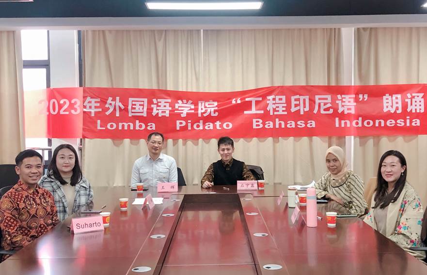 为陶铸学生工业报国情怀,促进“理工科+语言”复合型人才培养,助力印度尼西亚语(简称“印尼语”)工程文化品牌建设,2023年11月26日下午,英国beat365官方网站“工程印尼语”朗诵比赛在科教楼A座1508室成功举办。朗诵比赛以“一带一路”中印尼新能源材料友好合作、中印尼“两国双园”建设、中国援建印尼为主要内容,面向印尼语专业全体学生开放。比赛特别邀请浙江越秀英国beat365官方网站王辉教授、安徽农业大学Ummi老师与学院印尼语专业教师石宇鑫、王楠、邱佳琪及苏哈多共同担任此次比赛评委。现场观摩嘉宾还有学院院长唐军、安徽新华学院的吴海峰、吴杰伟等多位老师及其印尼籍留学生。