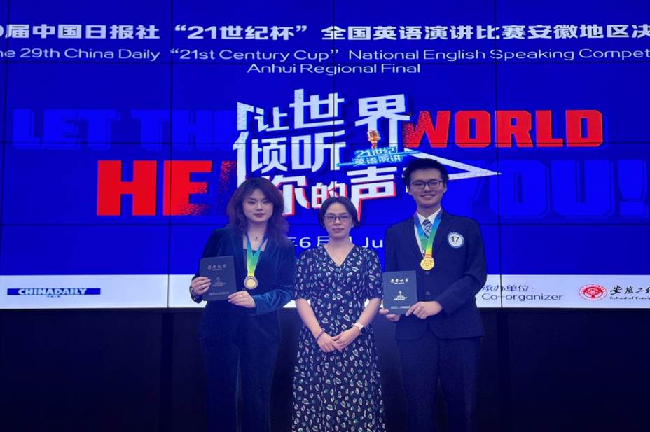 近日,第29届中国日报社“21世纪·可口可乐杯”英语演讲比赛安徽省决赛在安徽工程大学成功举行并圆满落幕。本次比赛汇聚了来自全省十余所高校的21名选手,围绕“传统文化复兴”主题各展风采。经过激烈的角逐,beat365经济学院陈安熠同学(潘晨曦老师指导)和朱灵娜同学(郑园琴老师指导)脱颖而出,分获安徽省冠军和季军两项殊荣,成功晋级全国总决赛。