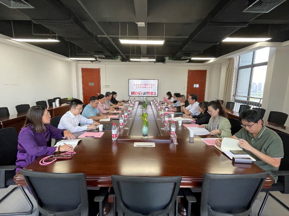 9月23日上午合肥市国际化建设工作专班调研交流会在科教楼A座1510顺利举行,市政府外事办公室主任刘鹏、礼宾处处长杜欢、国际化促进处副处长吴凡,市国际化建设工作专班执行副主任吴海军,高新区自贸局副局长李流芳等一行来beat365交流,学院院长唐军,副院长黄川、肖薇、李康熙,国际交流中心主任华啸尘,学生工作办公室主任兼团委书记赵雰雰,党政办公室主任苏凌云参加了此次座谈。