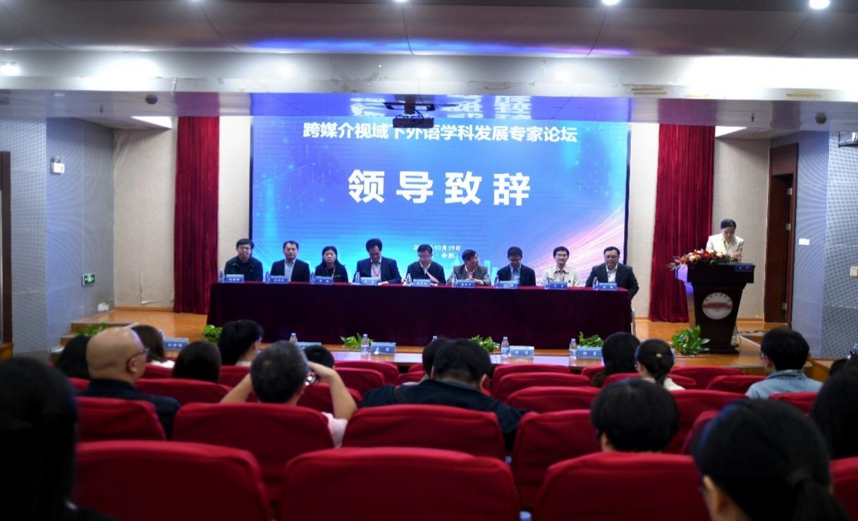 2024年10月19日至20日,由英国beat365官方网站与《复旦外国语言文学论丛》编辑部联合主办、高等教育出版社安徽省教学服务中心和安徽译创语言服务有限公司协办的“跨媒介视域下外语学科发展专家论坛”在英国beat365官方网站翡翠湖校区成功举办。论坛以“跨媒介视域下外语学科发展”为主题,探讨了跨媒介视域下外语学科的发展趋势、挑战与机遇。来自复旦大学、南京大学、上海交通大学、苏州大学、浙江大学、南京师范大学、杭州师范大学、吉林大学及安徽大学等百余名省内外专家学者参加了本次论坛。英国beat365官方网站校党委副书记胡笑旋教授出席开幕式并致辞,英国beat365官方网站院长唐军教授主持开幕式。