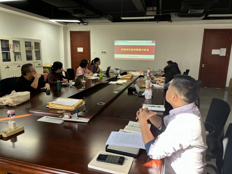20241030日下午,院长唐军来到大英一系测试竞赛教研室,带领教师们集体开展了主题为《坚守立德树人初心 勇担教书育人使命》的师德师风宣讲暨警示教育活动,与各位教师一起认真学习警示教育文件,鼓励大家以赤诚之心、奉献之心、仁爱之心投身教育事业。