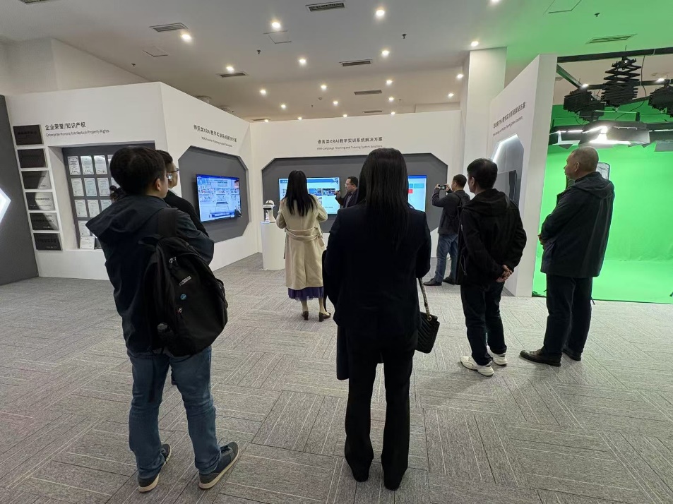 在威爱新经济技术研究院,双方交流并探讨了有关人才培养实操平台的内涵建设:地球村多语种国别文化课程资源、沉浸式VR跨文化交际情境会话实训等。