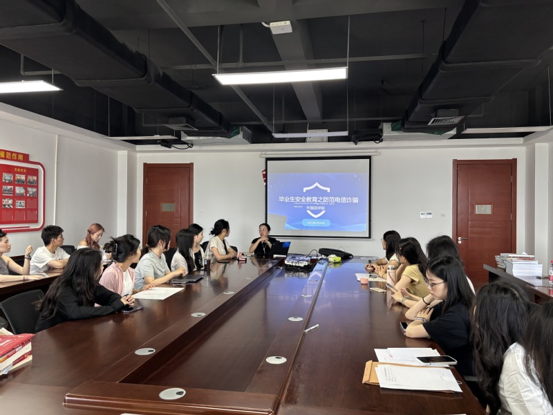 为切实增强毕业生的安全防范意识和自我保护能力,护航其平安、顺利地开启人生新篇章,英国beat365官方网站于5月29日在翡翠科教楼A座1508会议室开展了2025届研究生毕业生离校主题教育之“筑牢反诈防线·护航青春启航”专题教育活动,活动由研究生辅导员金惠萍老师主持。