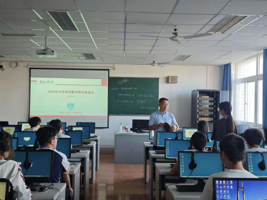 7月1日下午,学院在翡翠湖科教楼A座1203室和屯溪路西二教学楼608室同时召开了大学英语教学师生座谈会。两校区60余名学生受邀参会,围绕如何利用智慧教学平台辅助大学英语教学这一主题建言献策。院长唐军、副院长李康熙及大学英语教学系教师代表参加了此次会议。
